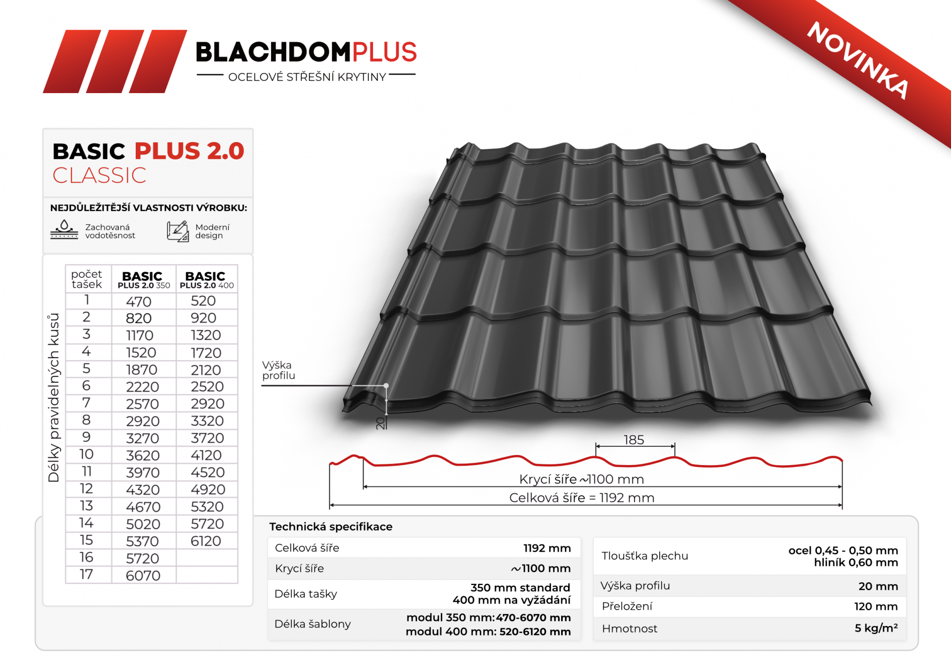 | Délka šablony (taška 400mm) | min. 520mm, max. 6120mm |